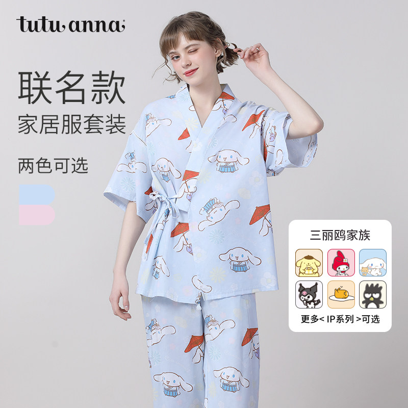 tutuanna家居服套装睡衣女夏 三丽鸥家族印花短袖甚平长款睡裙女