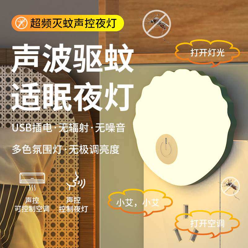 智能声控超声波驱蚊小夜灯柔光护眼插电式家用卧室驱蚊器睡眠夜灯