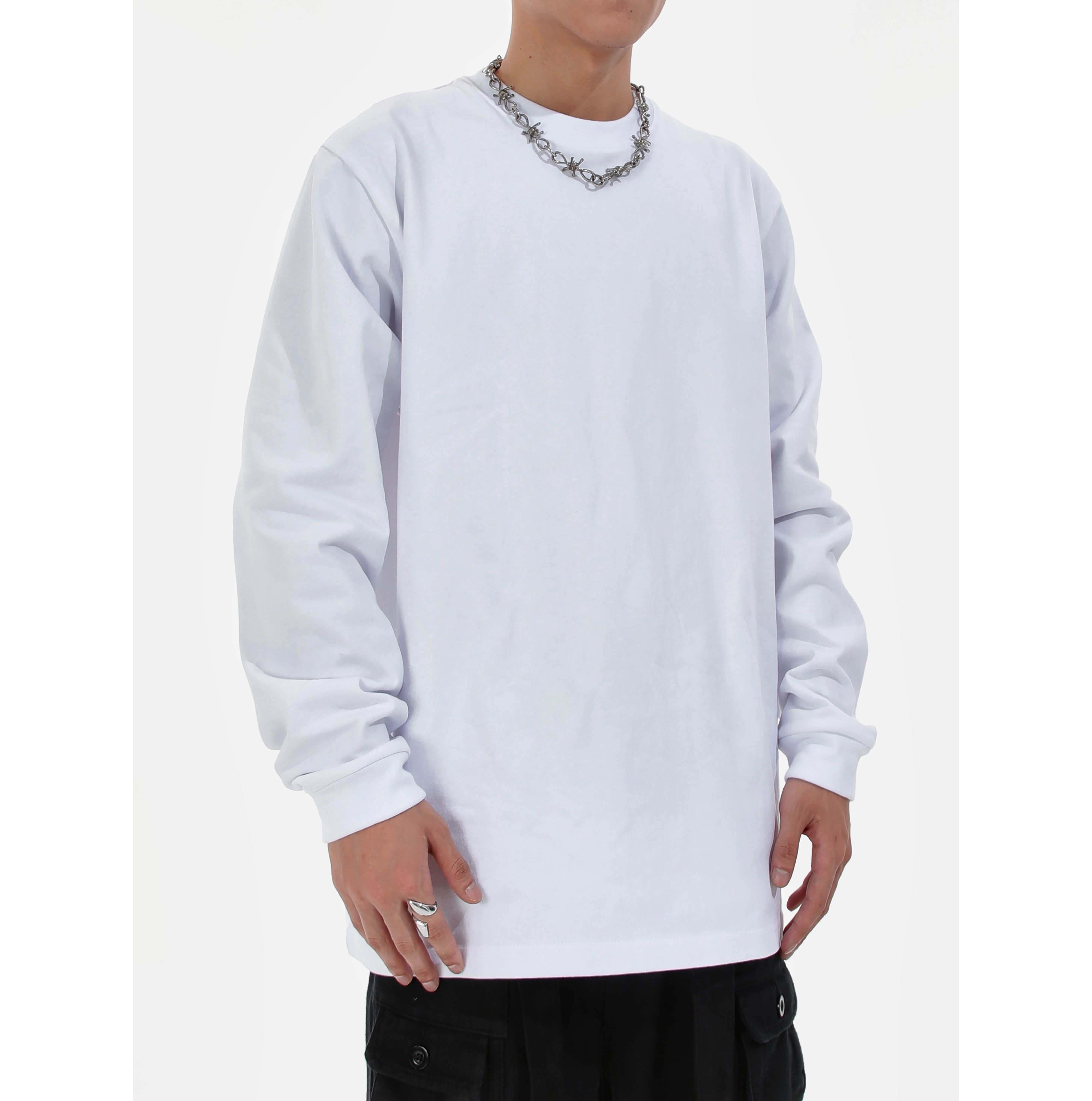 @港仔文艺男 白色纯棉长袖t恤男宽松卫衣纯色男生内搭打底衫男款
