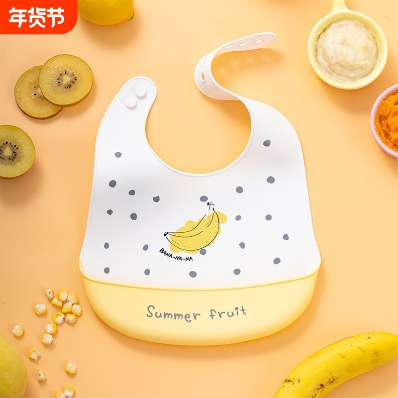婧麒宝宝吃饭围兜防水围嘴儿童硅胶超软食饭兜婴儿防脏口水兜辅食