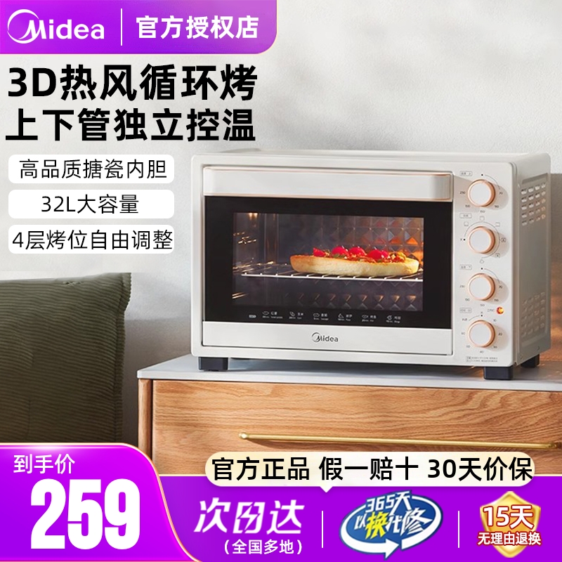 美的电烤箱家用32升大容量发酵干果机烘焙专用空气炸锅搪瓷风炉