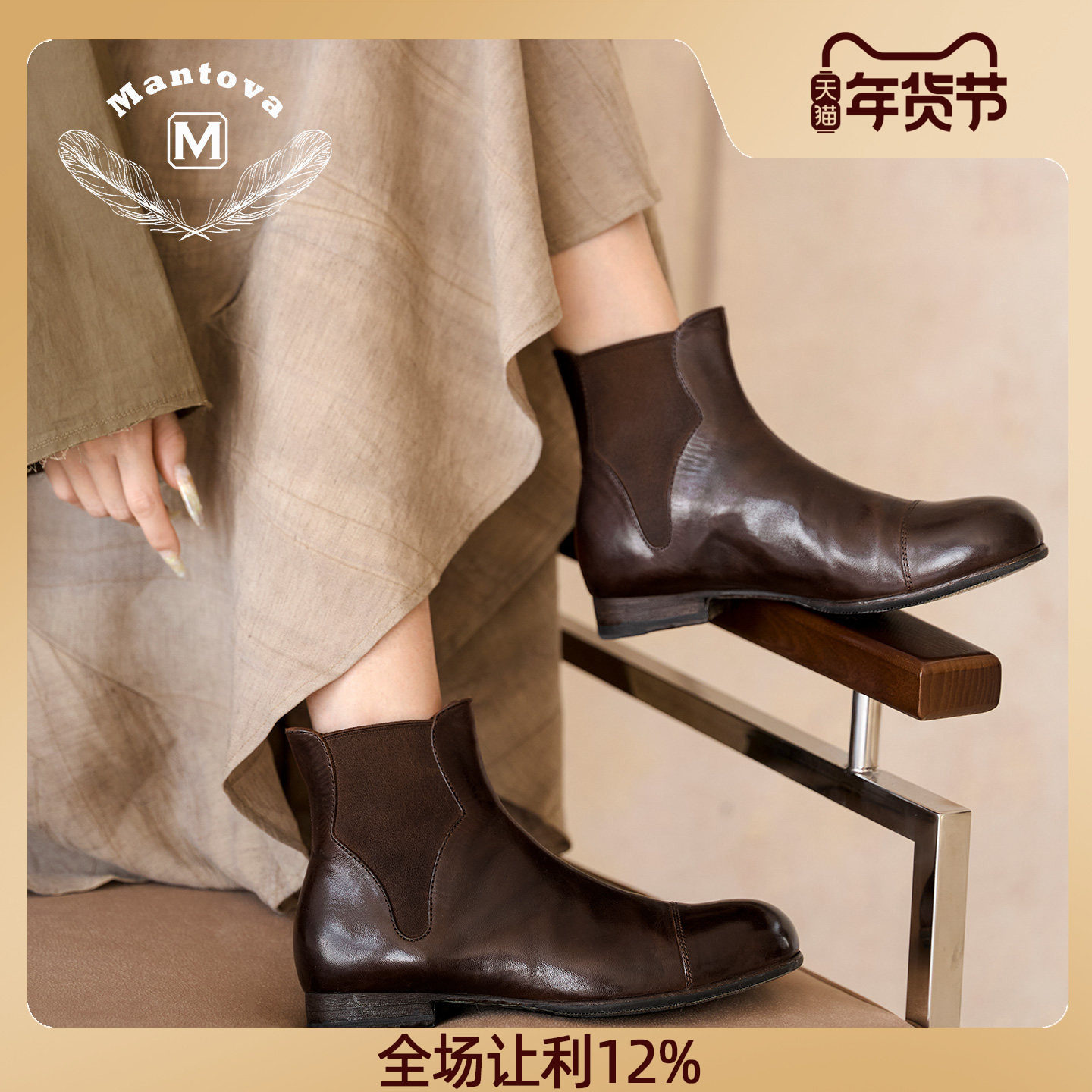 Mantova曼托瓦真皮切尔西靴手工马皮马丁靴高级复古英伦风短靴女