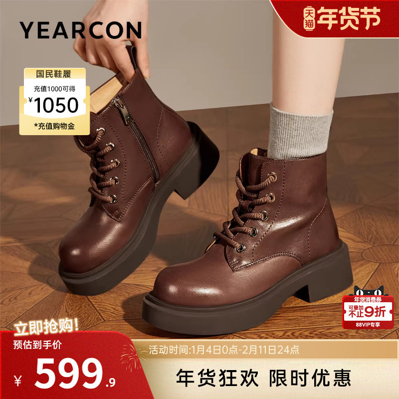 蜘蛛王女鞋清仓特价冬季加绒马丁靴百搭休闲真皮系带英伦风短靴女