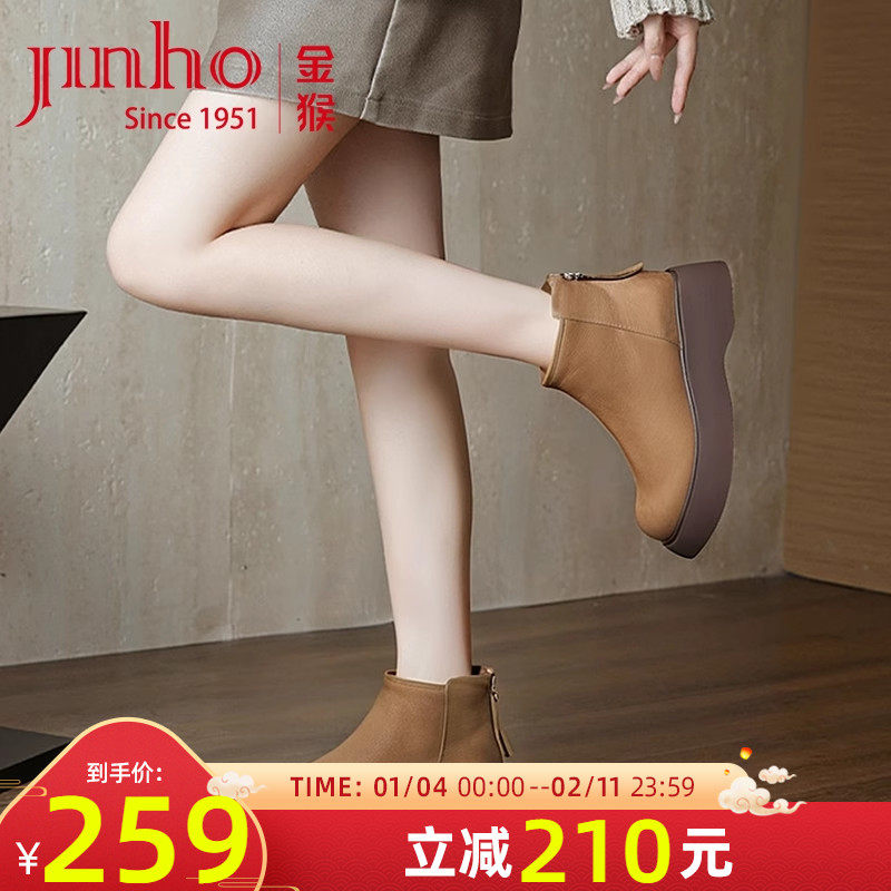 金猴女鞋2025秋季新款牛皮时尚百搭厚底切尔西靴女英伦风短靴女