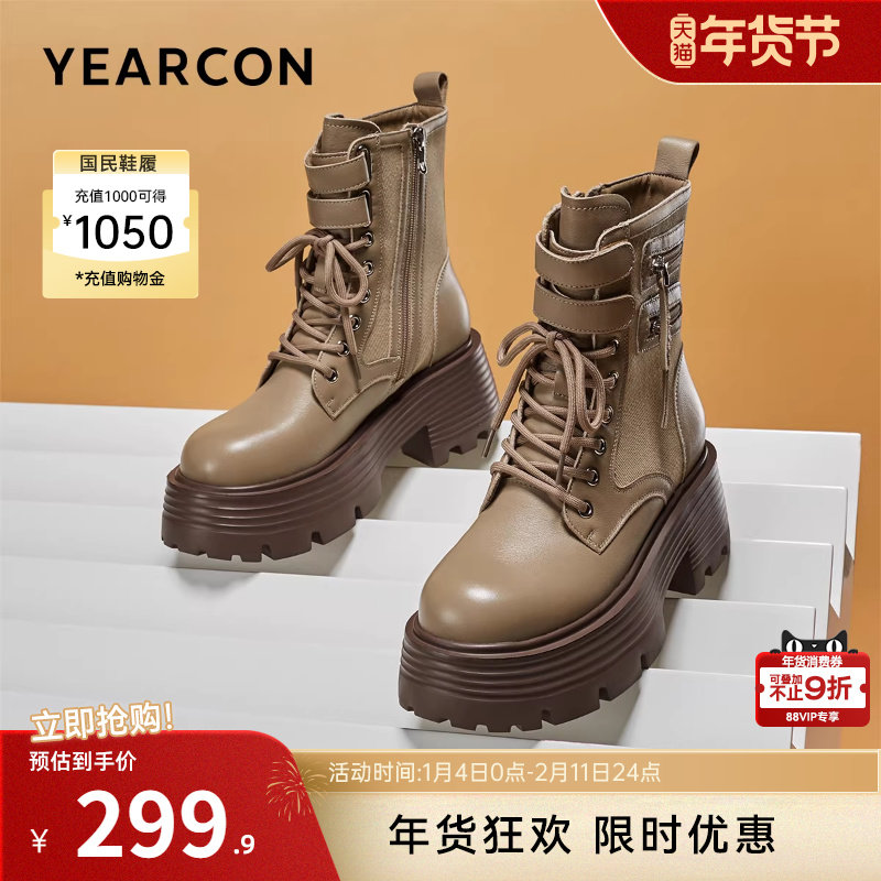 骆驼马丁靴女鞋2025秋季新款工装大黄靴英伦风厚底户外登山短靴子