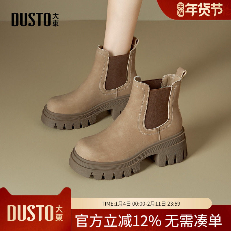 大东官方厚底马丁靴女款2025新款冬季英伦风短靴女弹力瘦瘦靴袜靴
