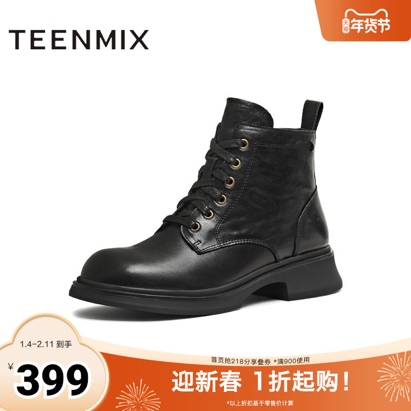 天美意2025冬新款商场同款厚底复古英伦风短靴女马丁靴BM051DD5