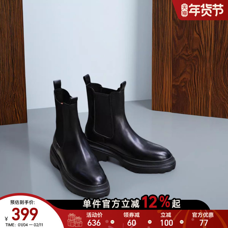 millies妙丽英伦风短靴女2025新款气质皮靴厚底切尔西靴真皮加棉