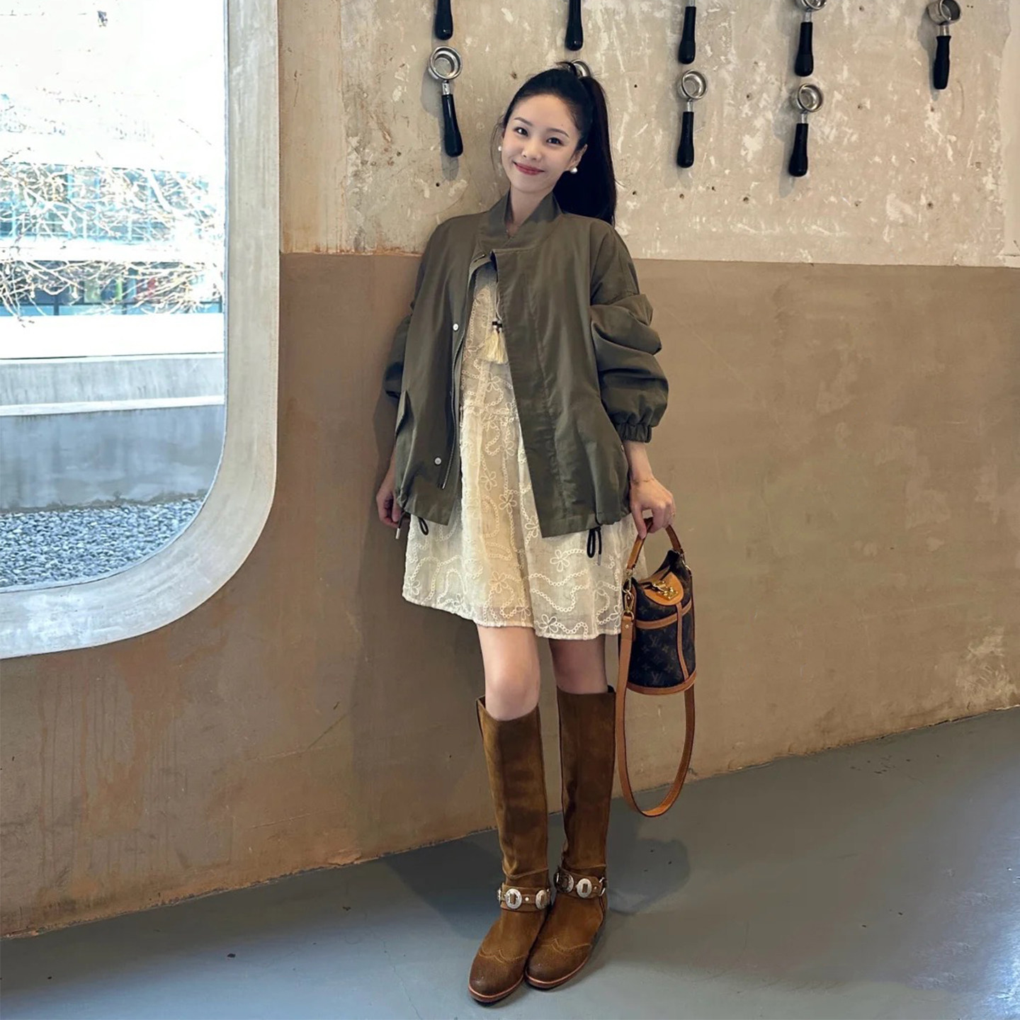 赵露思许妍同款军绿色工装外套女中长款韩系宽松立领复古风衣春薄