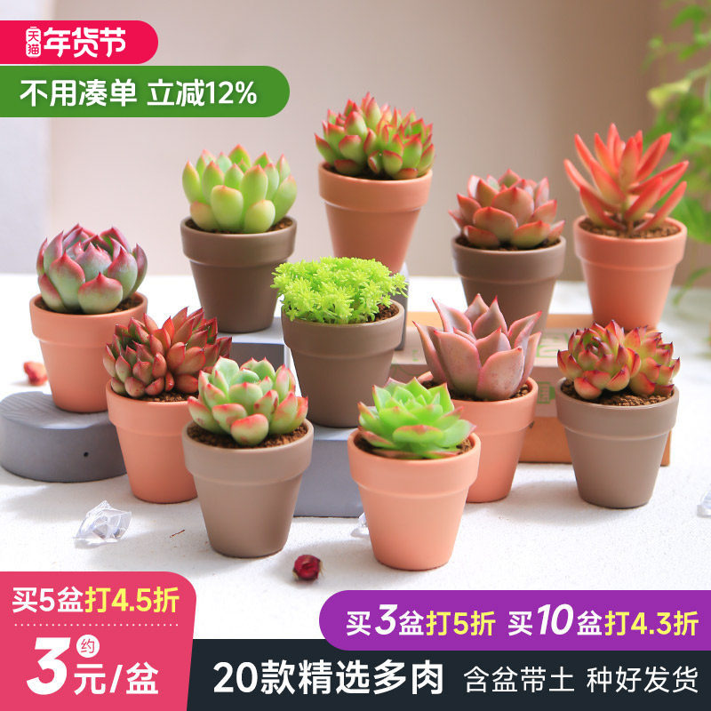 多肉带盆桌面小盆栽办公室绿植花仙人球稀罕植物室内幼儿园仙人掌
