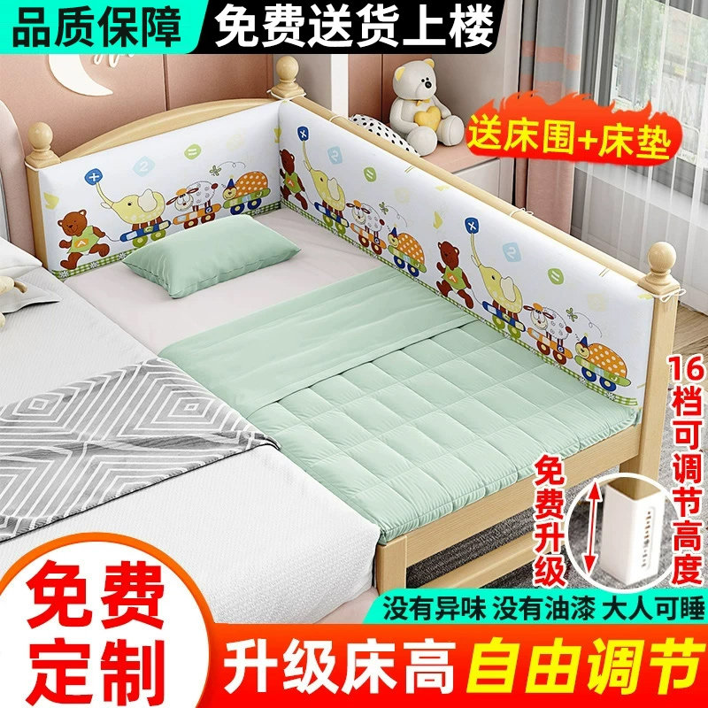 实木儿童床带护栏婴儿小床男孩女孩公主床宝宝床边床加宽拼接大床