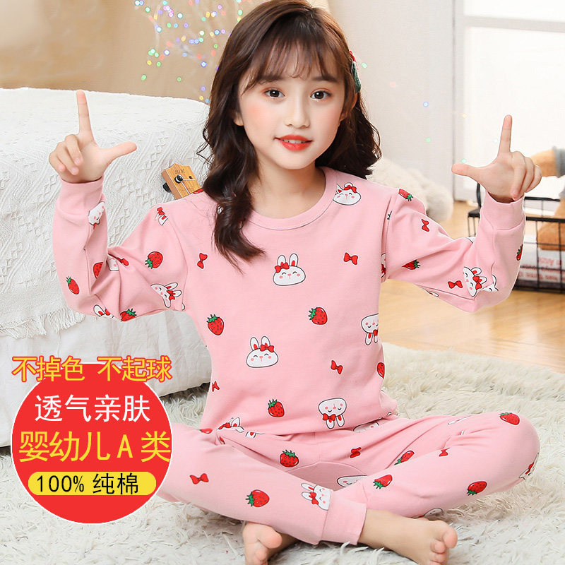 女童内衣套装纯棉儿童秋衣秋裤全棉睡衣保暖秋装女孩中大童草莓熊