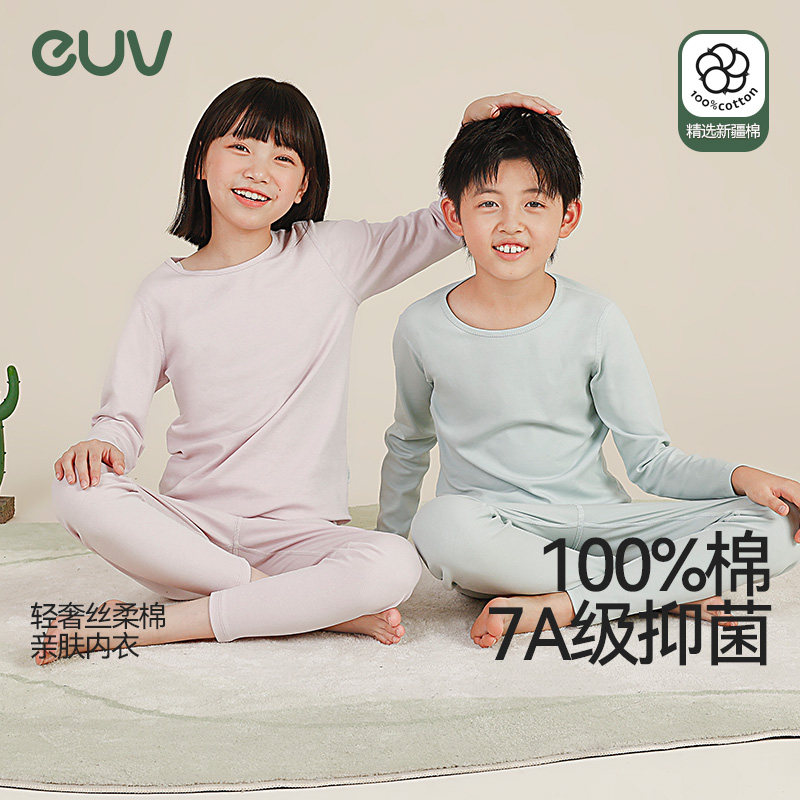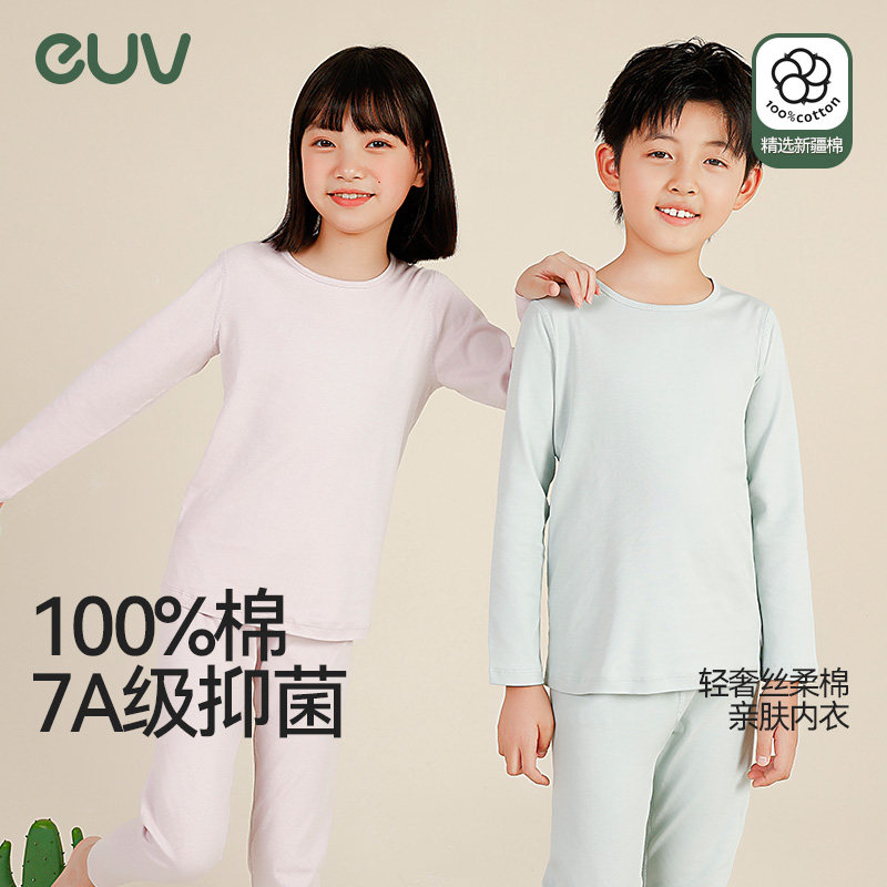 euv 全棉儿童秋衣秋裤男女童内衣套装纯棉a类中大童女男孩棉毛衫
