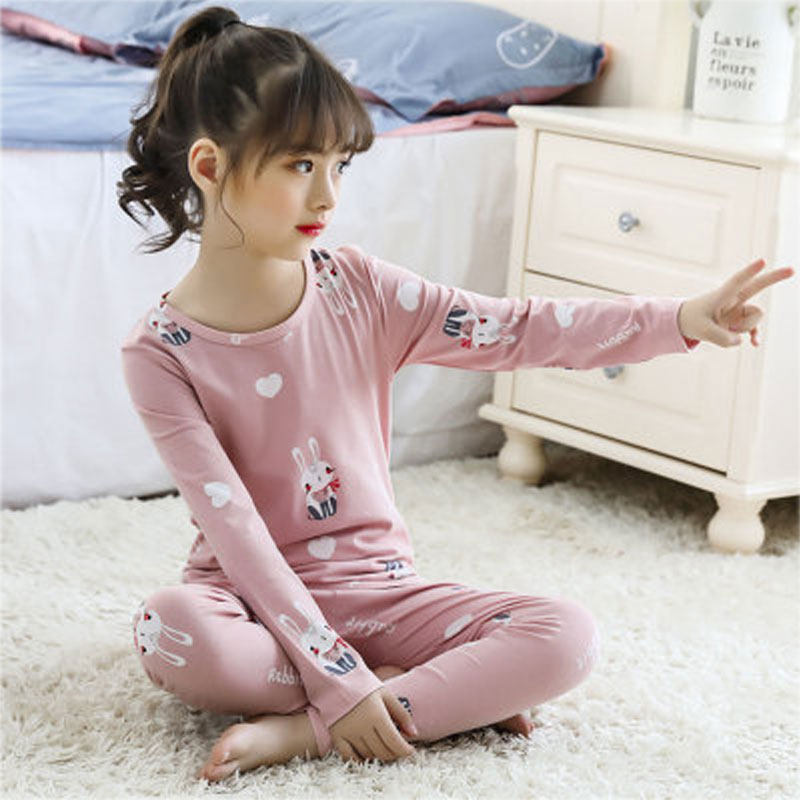 英博伦女宝宝女童内衣套装纯棉卡通儿童保暖秋衣秋裤薄款居家睡衣