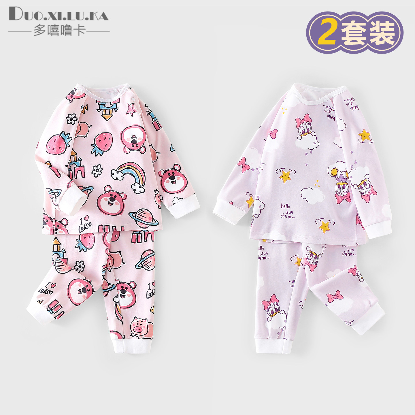 2套 儿童睡衣春装男女童内衣套装纯棉卡通宝宝家居服打底分体衣服