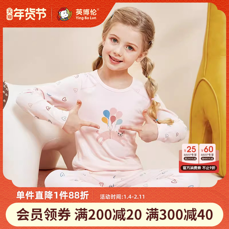 英博伦春秋季女童内衣套装纯棉薄款儿童秋衣秋裤小女孩棉毛衫睡衣