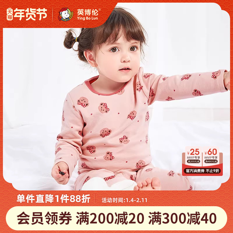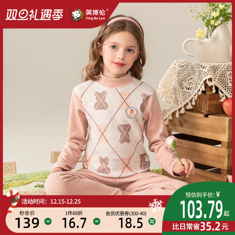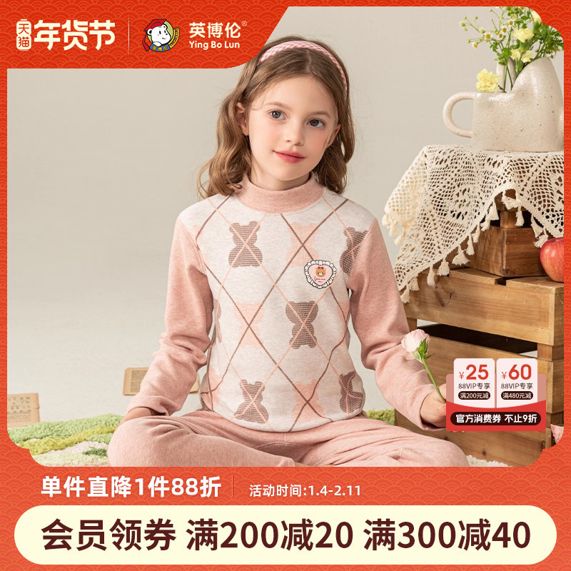 英博伦女童内衣套装纯棉儿童宝宝保暖秋衣秋裤全棉秋冬女孩棉毛衫