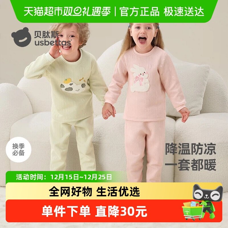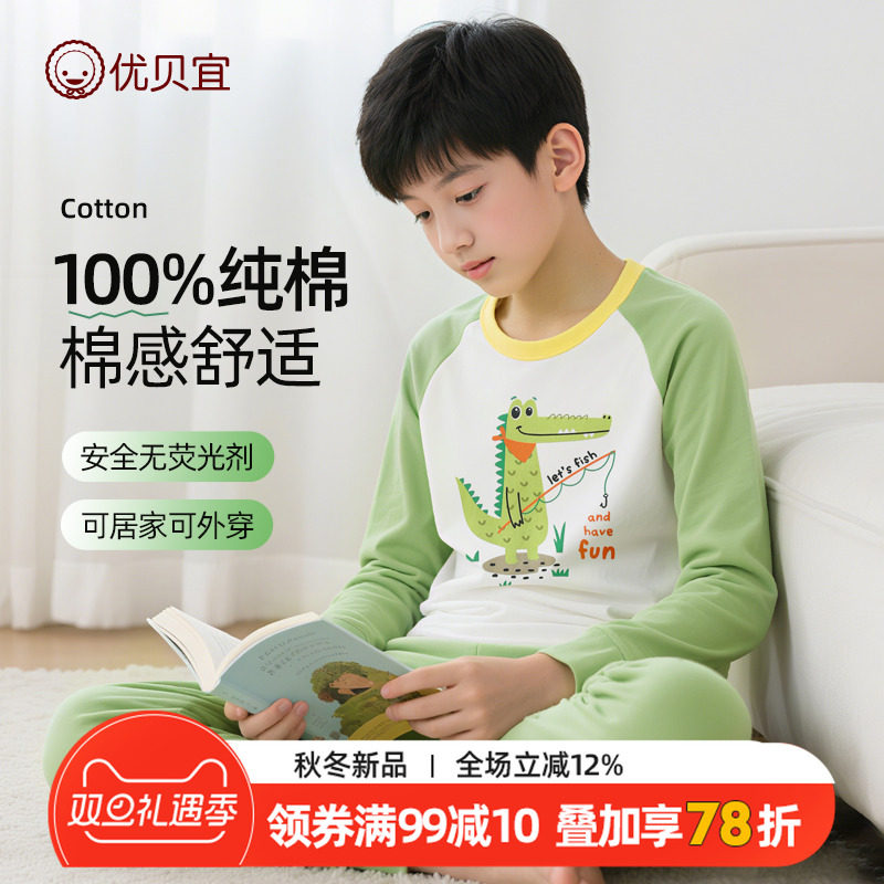 优贝宜儿童秋衣秋裤春秋季睡衣男女童内衣套装纯棉中大童宝宝秋装