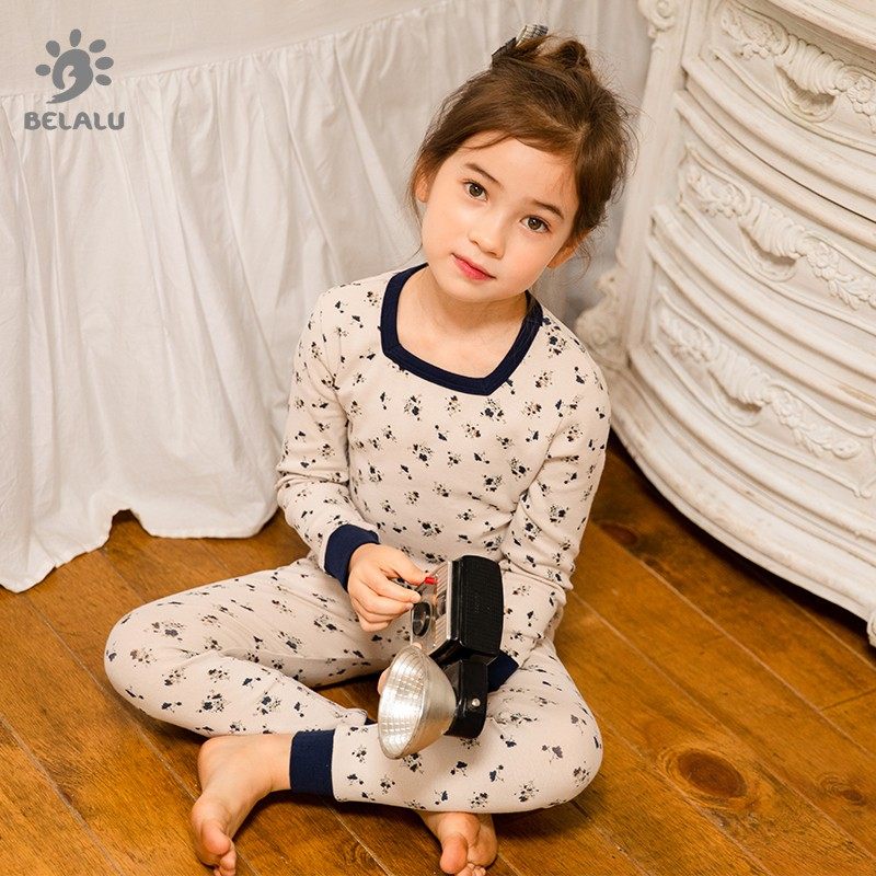 呗啦噜女童内衣套装纯棉碎花春秋小女孩秋衣秋裤棉毛衫家居服套装