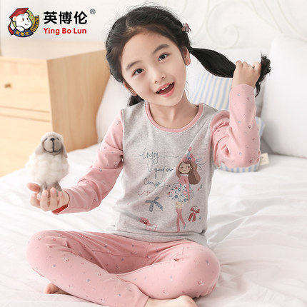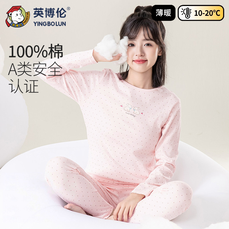 英博伦新款女童内衣套装纯棉莱卡儿童秋衣秋裤中大童女孩睡衣薄款