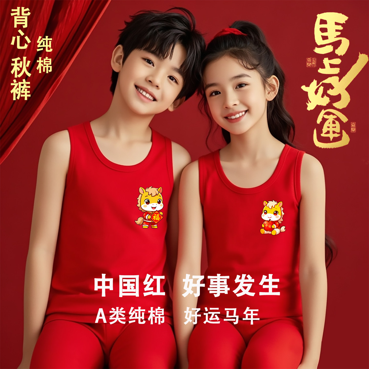 儿童红秋裤马年男童本命年红色背心女童内衣套装纯棉男孩胖童线裤