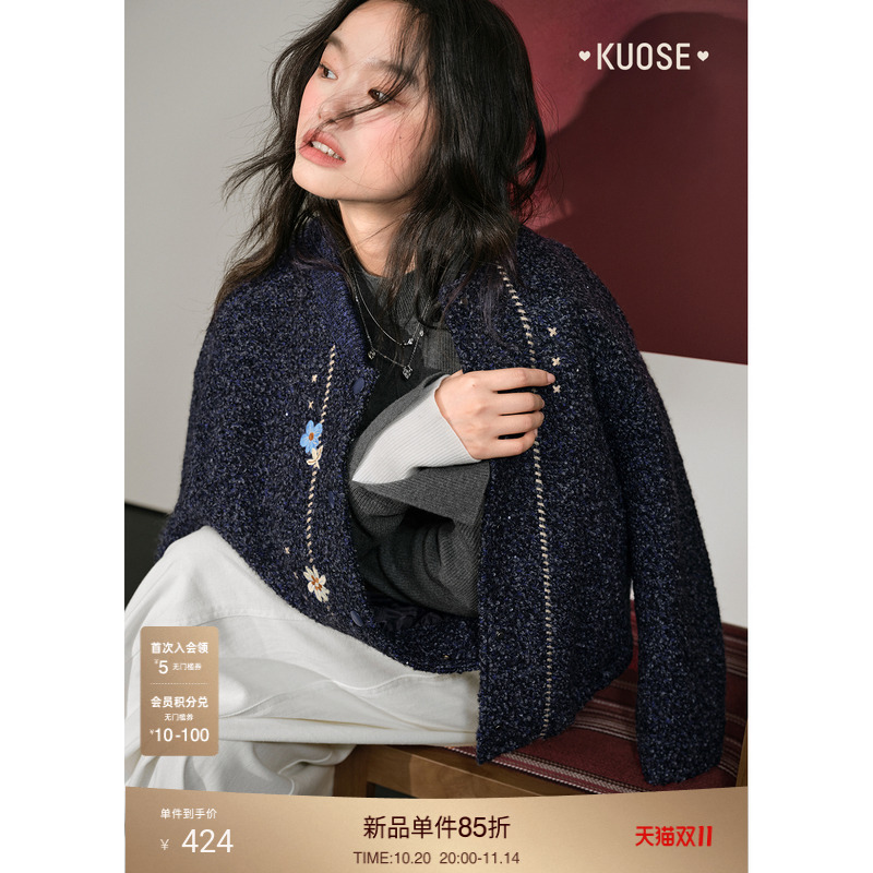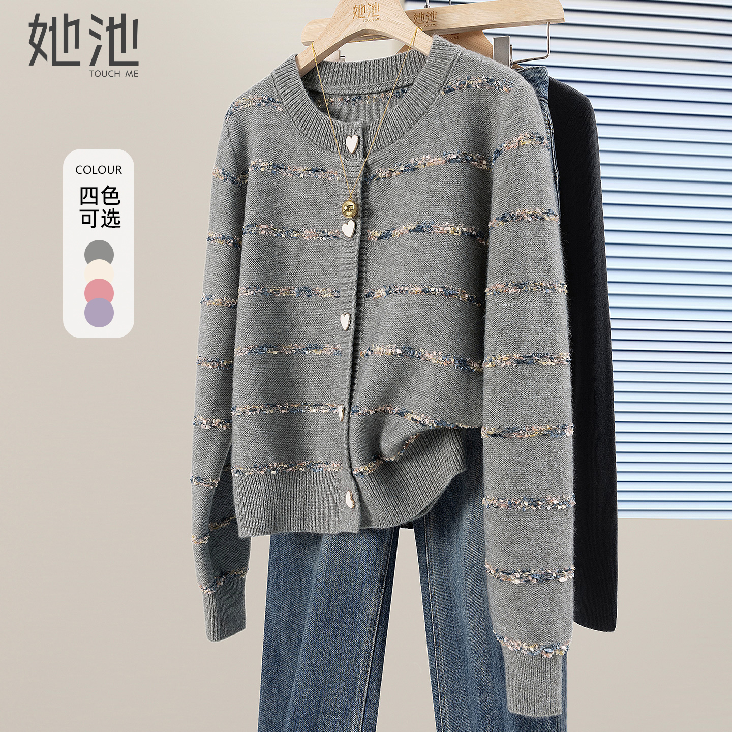 她池小香风针织衫2025秋装新款女装时尚宽松款爱心单排扣圆领上衣