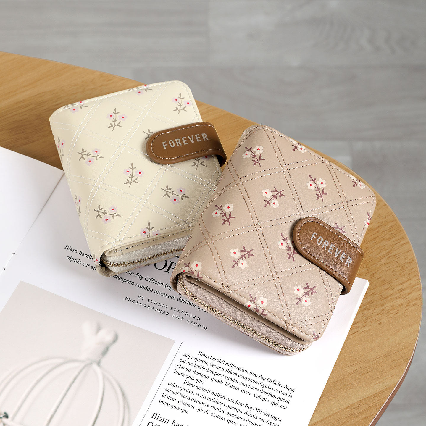 韩系碎花钱包女款大容量高颜值学生卡包一体多功能拉链短款零钱包