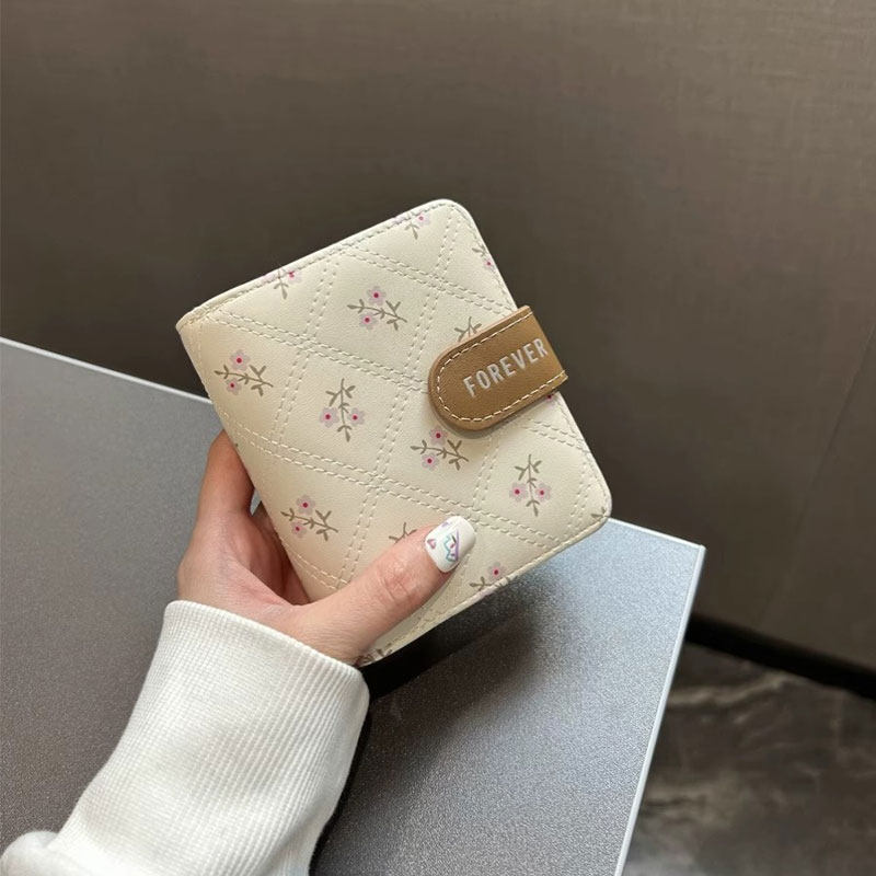 新款轻奢碎花钱包女多功能大容量折叠钱袋可爱学生卡包短款零钱包