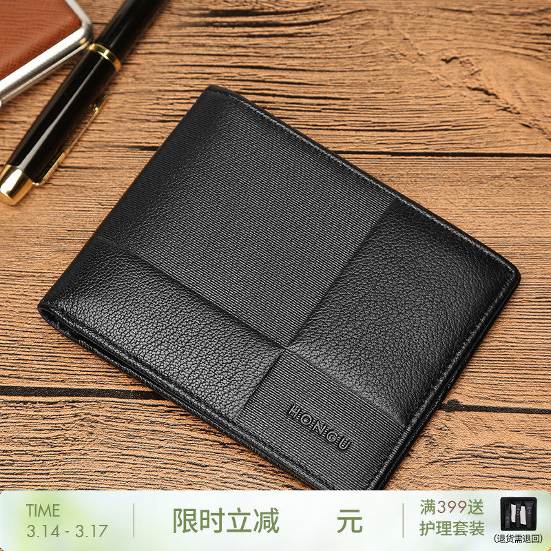 HONGU/红谷真皮男士钱包卡包商务压纹商务头层牛皮短款零钱包卡包