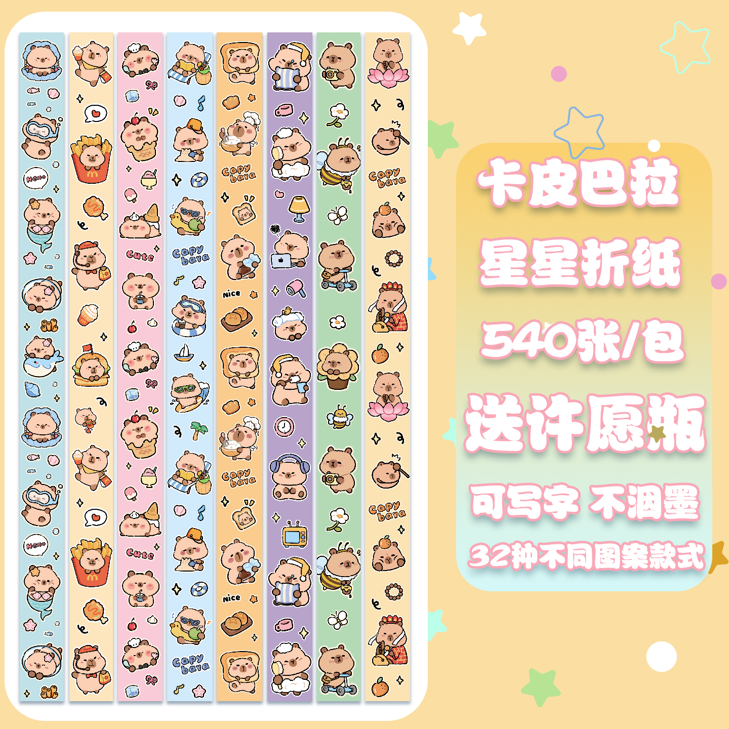卡皮巴拉星星折纸ins可爱呆萌彩色卡纸条可写字手工diy专用许愿瓶幸运瓶高颜值五角星星瓶七夕礼物送男女朋友