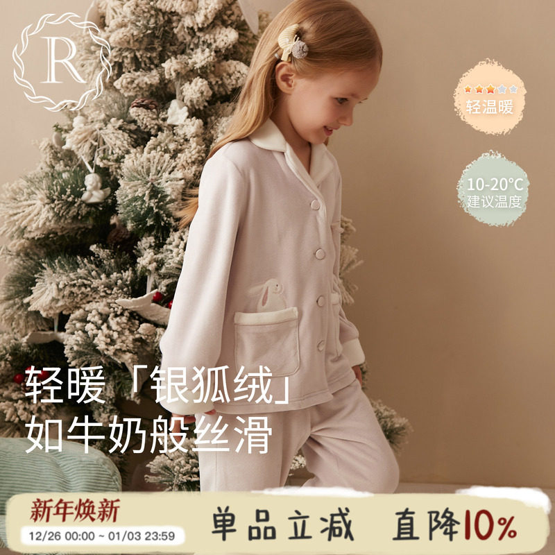 RoseTree女童睡衣秋冬半边绒儿童珊瑚绒法兰绒套装冬季女孩家居服