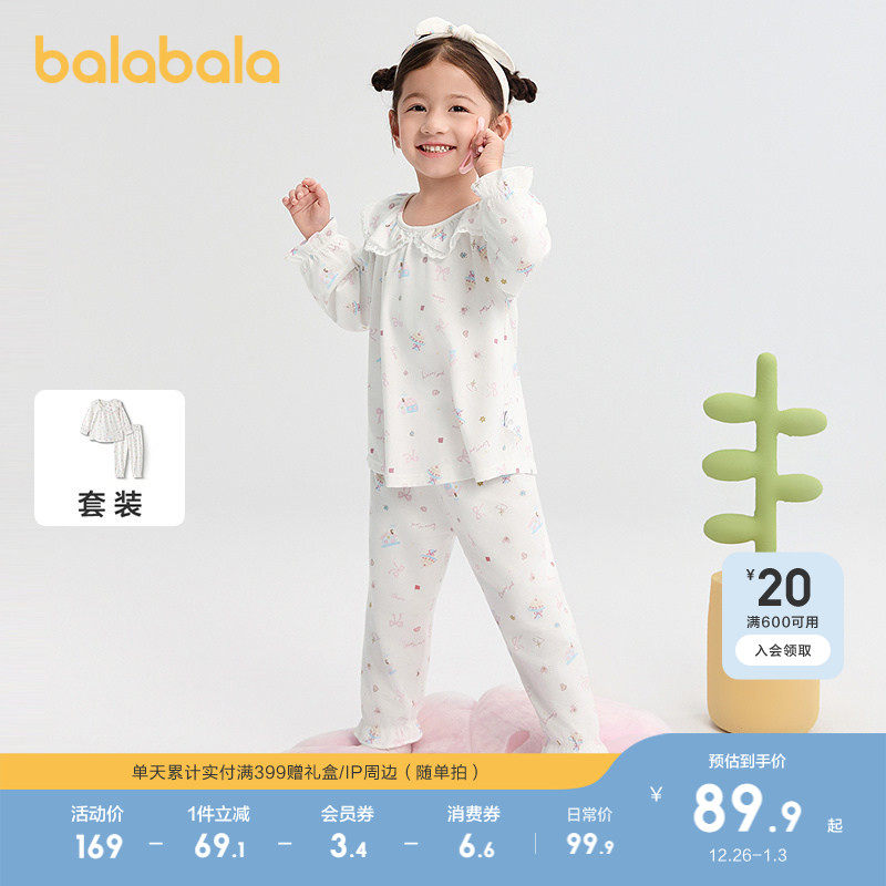【balaOne】巴拉巴拉女童睡衣套装秋季新品儿童家居服小童宝宝萌