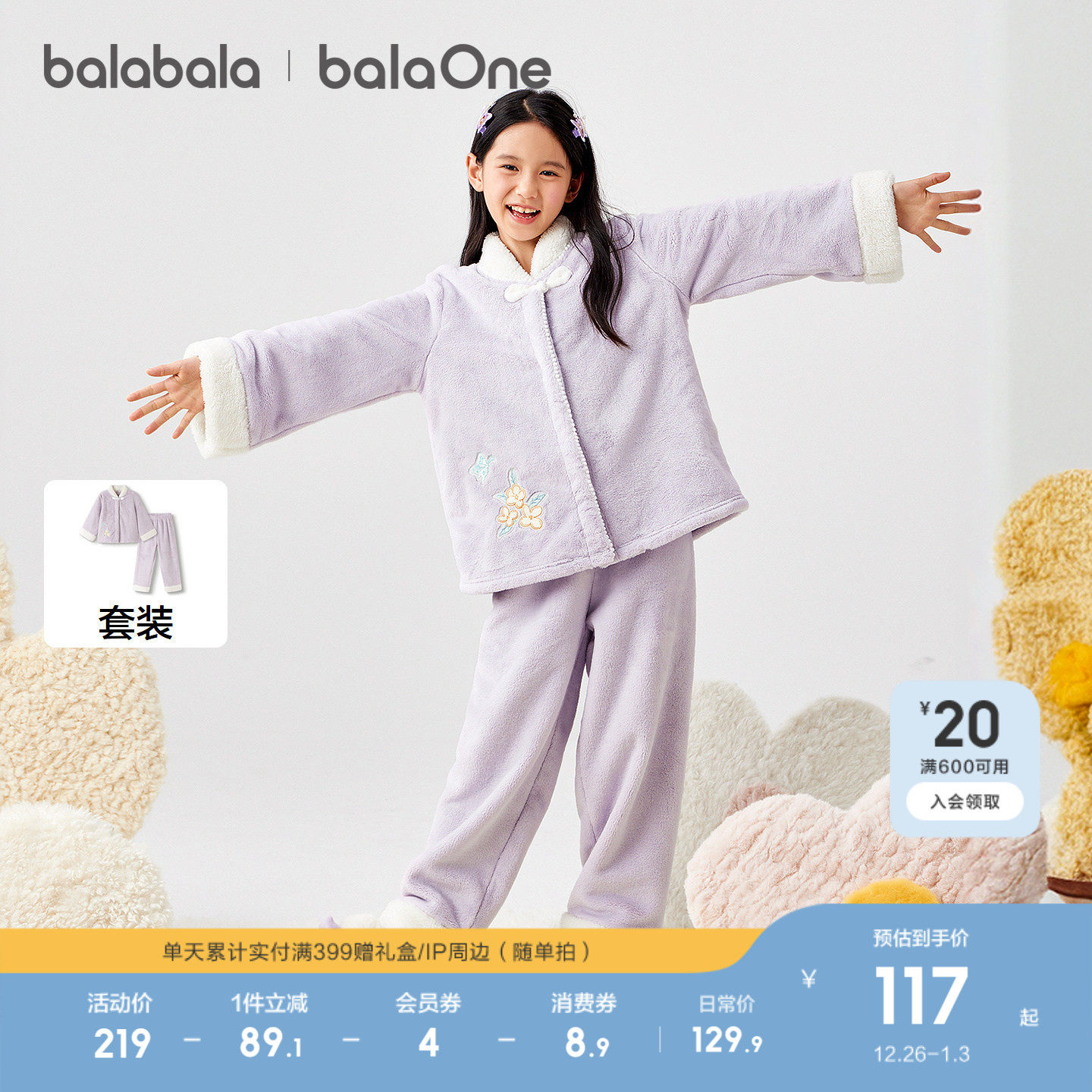 【balaOne】巴拉巴拉女童睡衣套装2025冬新款加厚法兰绒保暖国风