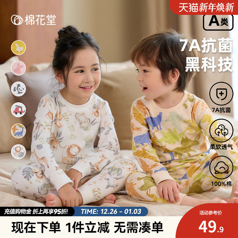 棉花堂儿童秋衣秋裤宝宝内衣套装纯棉全棉男童女童睡衣棉毛衫保暖