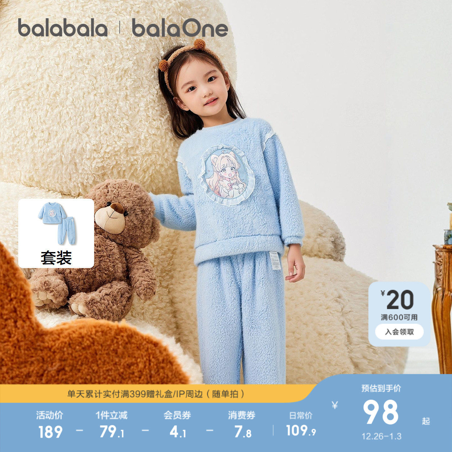 【balaOne】巴拉巴拉女童睡衣套装2025冬季新款珊瑚绒宝宝家居服