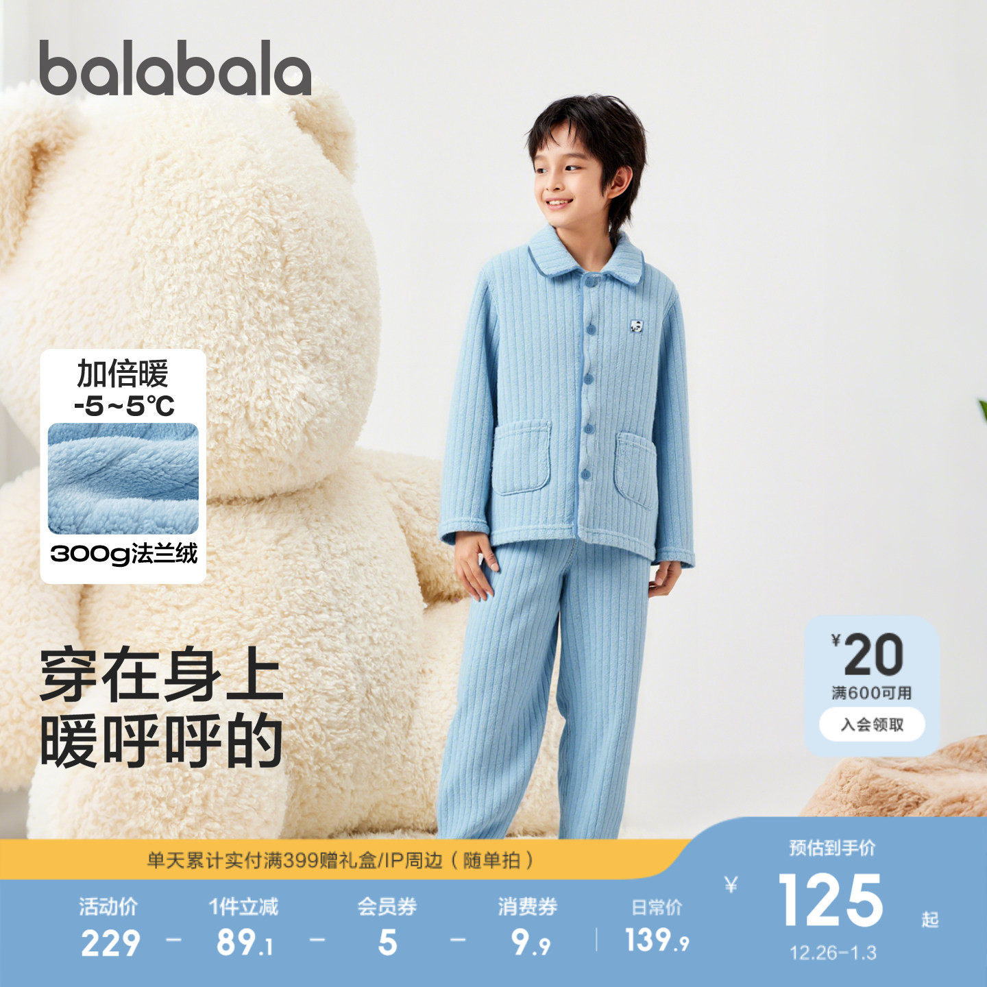 【balaOne】巴拉巴拉儿童家居服套装2025冬季法兰绒男女童睡衣暖