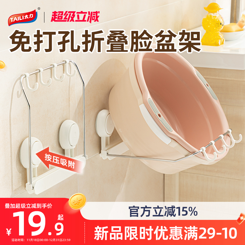 太力脸盆收纳架挂钩卫生间盆子面盆卫生间吸盘置物整理架挂盆神器