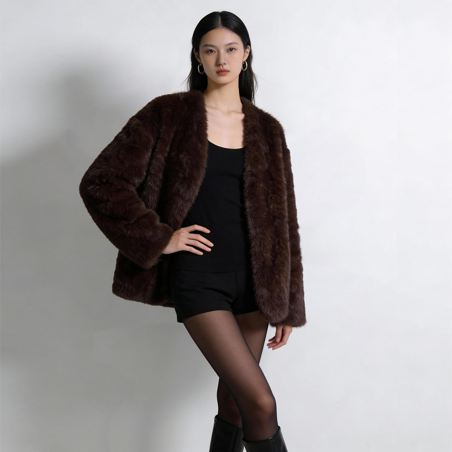 2025冬季新款仿水貂毛皮草外套女短款宽松显瘦高级感加厚毛毛上衣