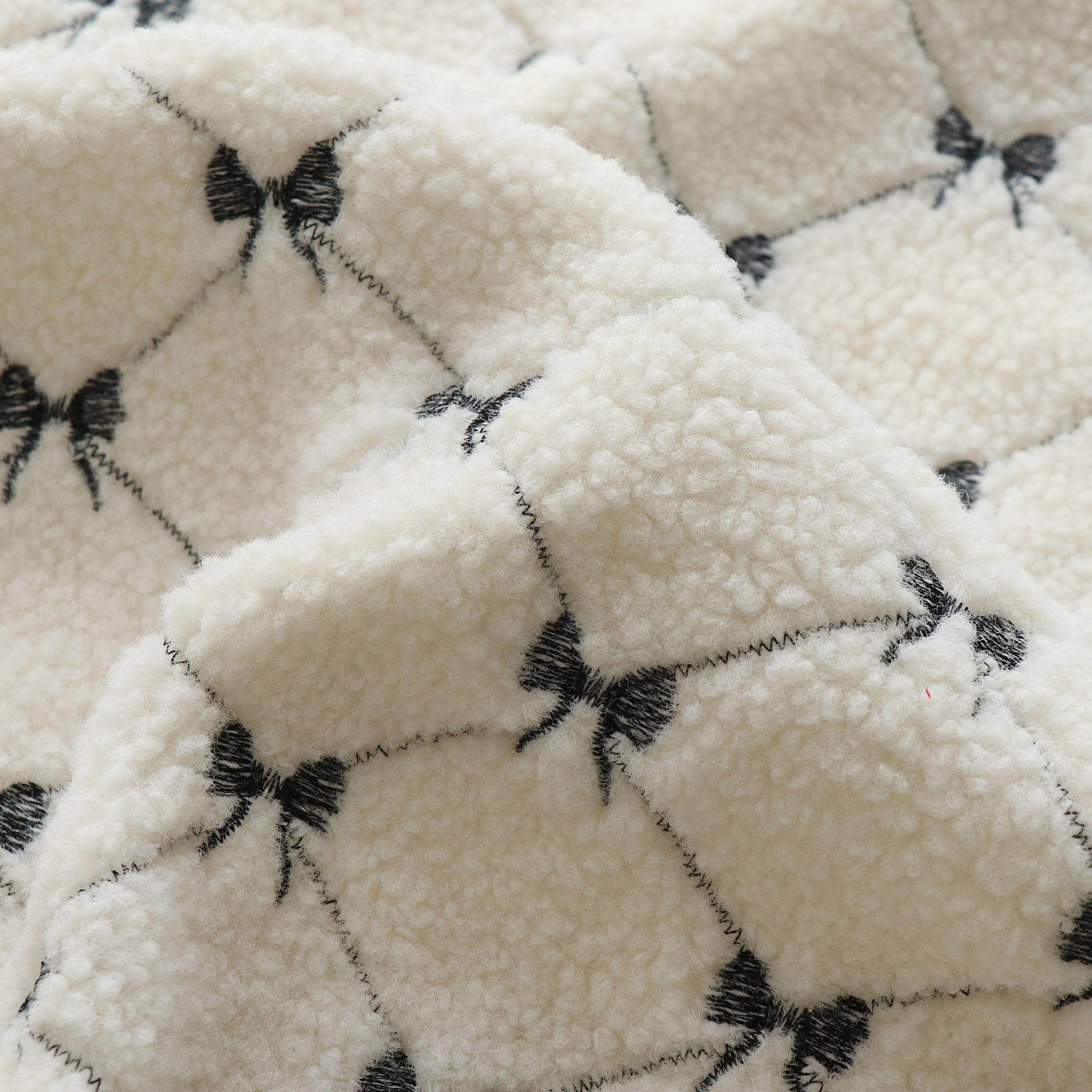 ins风可爱黑色蝴蝶绣花羊羔毛刺绣秋冬卫衣外套服装玩具抱枕diy布
