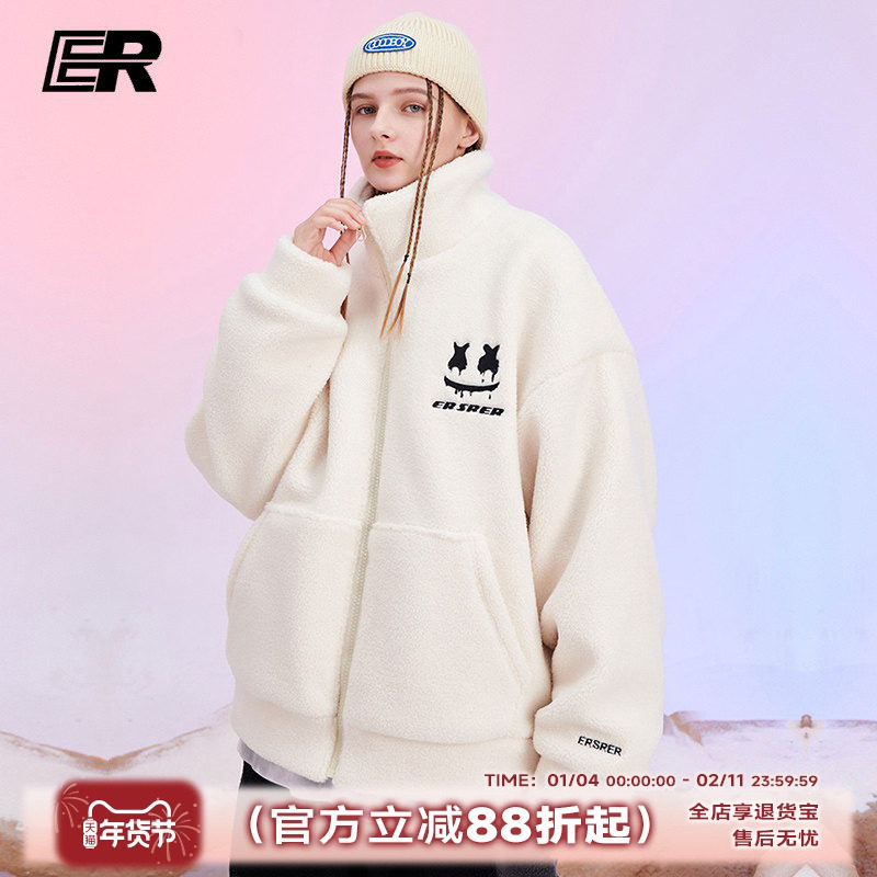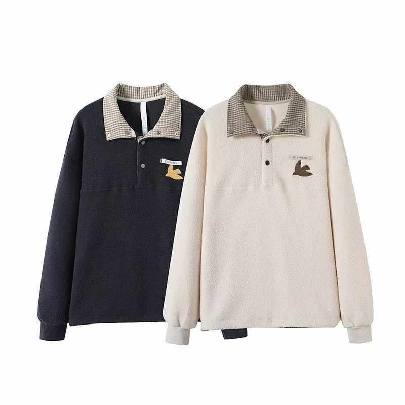 ACMEITEM爱棵米 秋冬仿羊羔毛抓绒刺绣翻领卫衣宽松长袖上衣男女