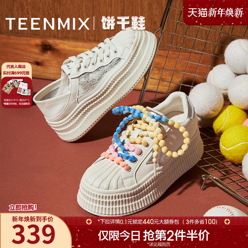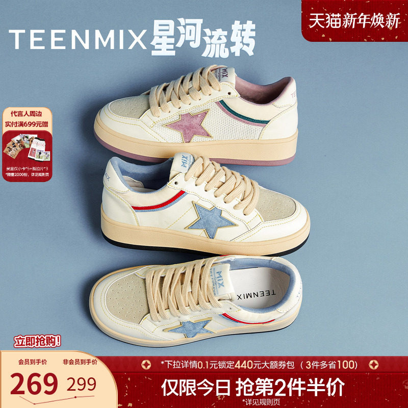 天美意复古厚底小白鞋星星板鞋女运动休闲鞋2025秋季新款KB077CM5