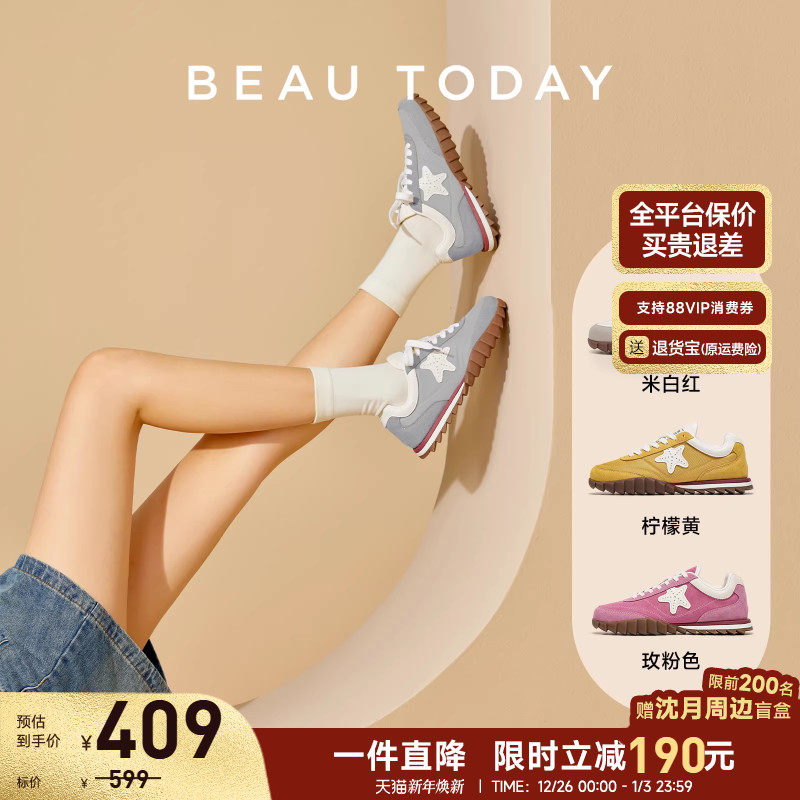 BeauToday复古德训鞋女2025秋季新款女士阿甘鞋运动休闲鞋星星鞋