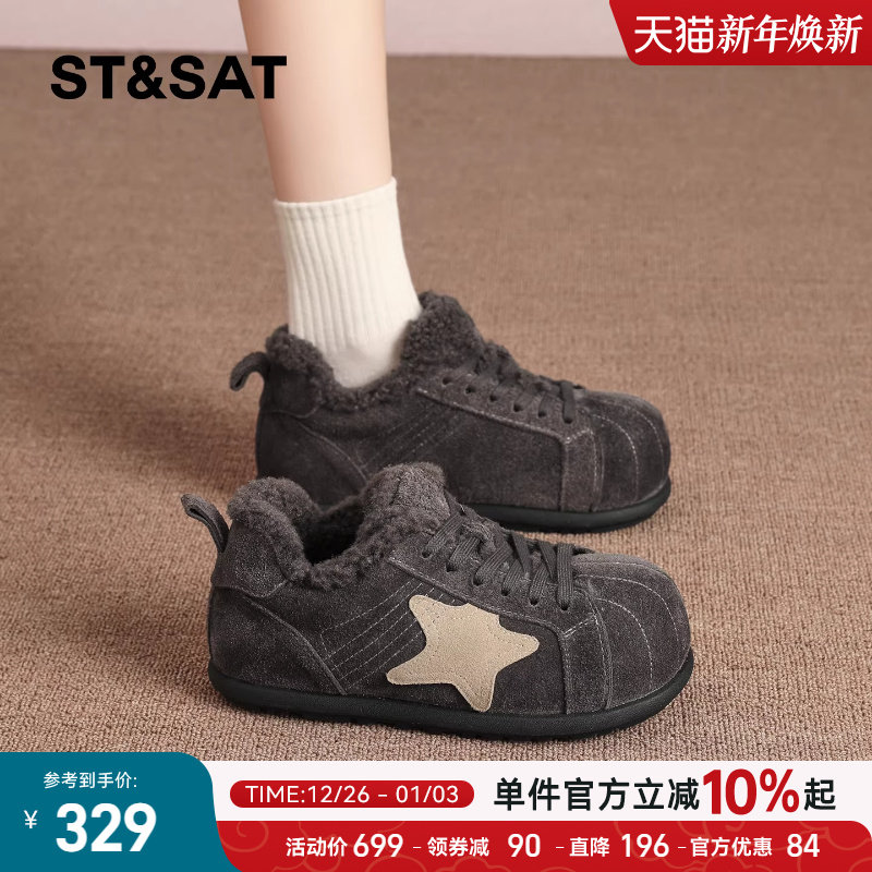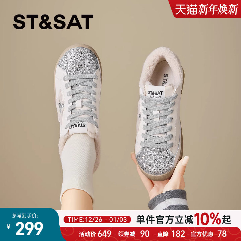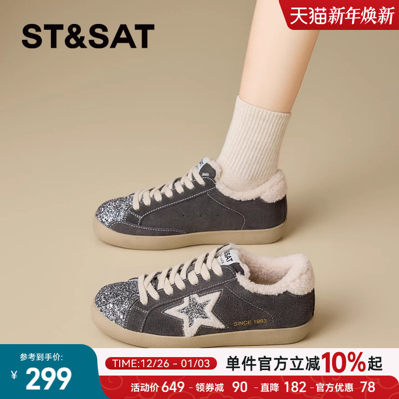 星期六休闲板鞋小白鞋2025新冬季加绒爆款平底休闲鞋星星德训鞋女