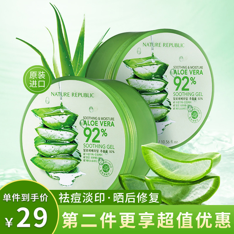 自然乐园芦荟胶补水保湿滋润自然共和国女晒后修复面膜凝胶祛痘印