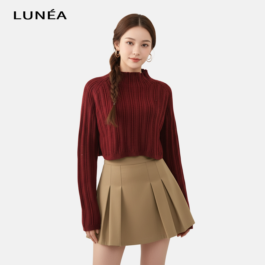 别致半高领坑条纹短款毛衣女秋冬2025新款小个子保暖加厚针织上衣