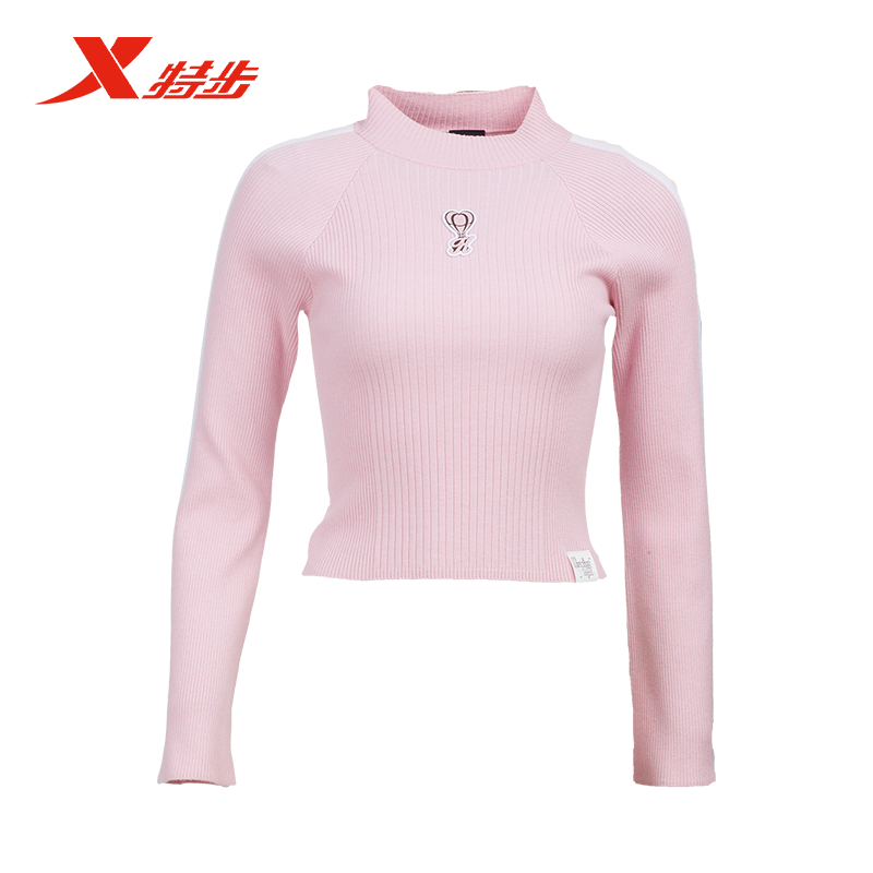 特步运动短款半高领毛衣针织衫女2025春新款时尚长袖9751285D0559