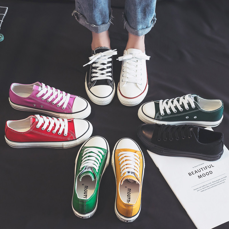 环球红色帆布鞋女ulzzang百搭绿色秋季低帮经典球鞋ins潮运动板鞋