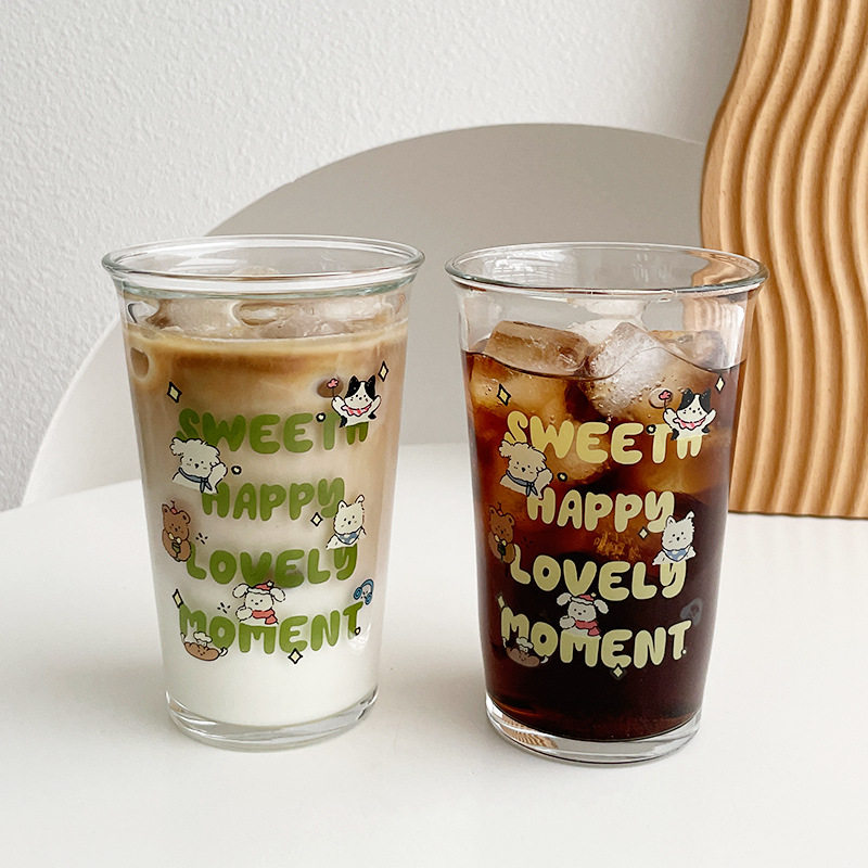 ins玻璃杯咖啡杯小众果汁杯卡通水杯家用高颜值可爱牛奶杯饮料杯