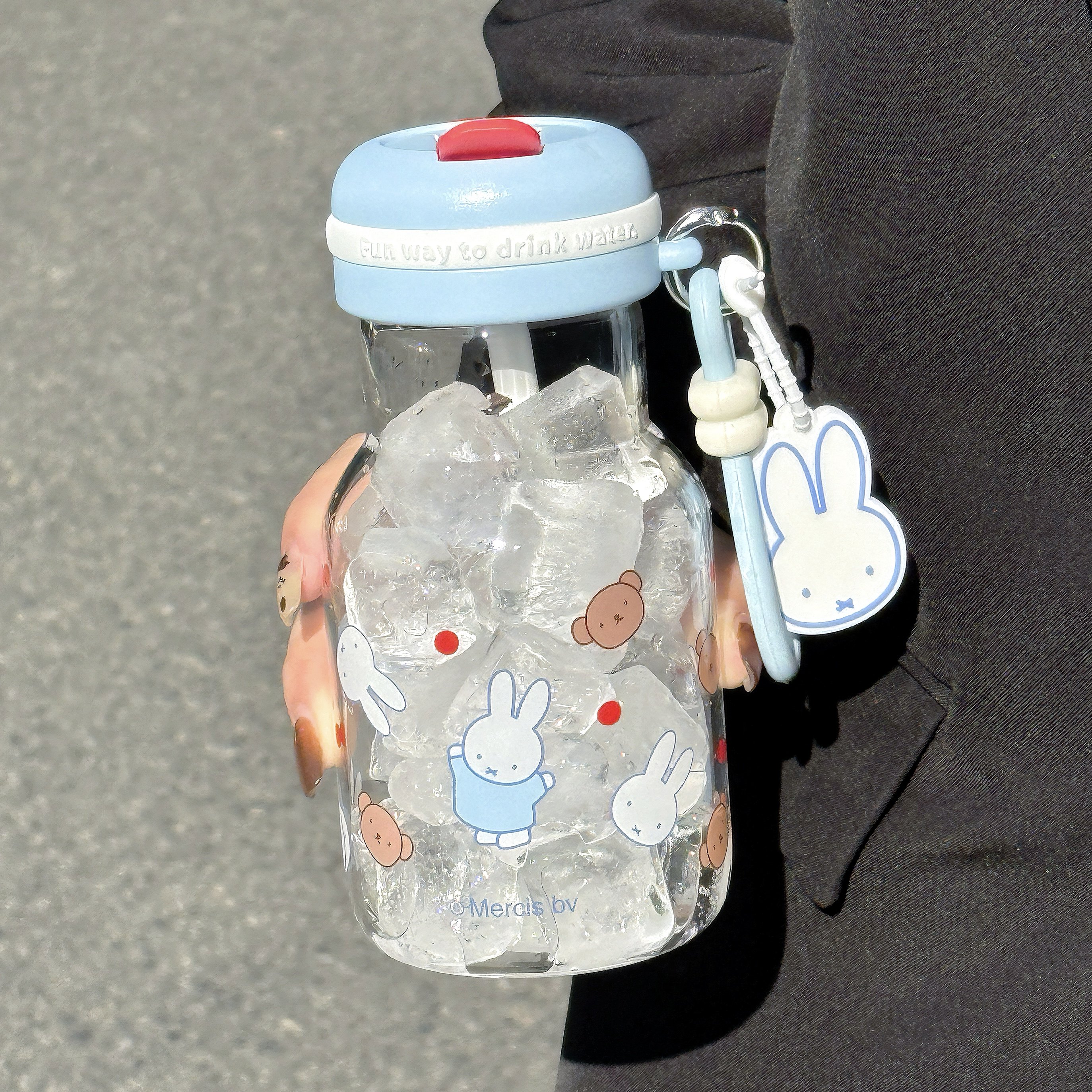 米菲兔可爱玻璃杯高颜值耐高温吸管杯子女生便携水杯学生2026新款