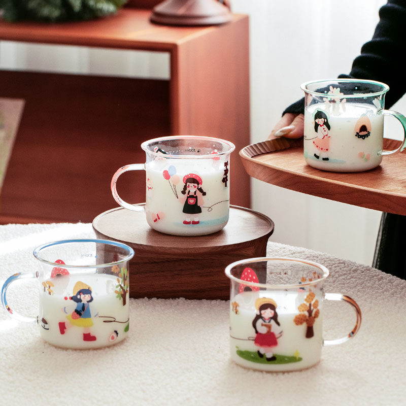 可爱玻璃杯子家用高硼硅喝水杯女高颜值儿童早餐杯牛奶杯可微波炉